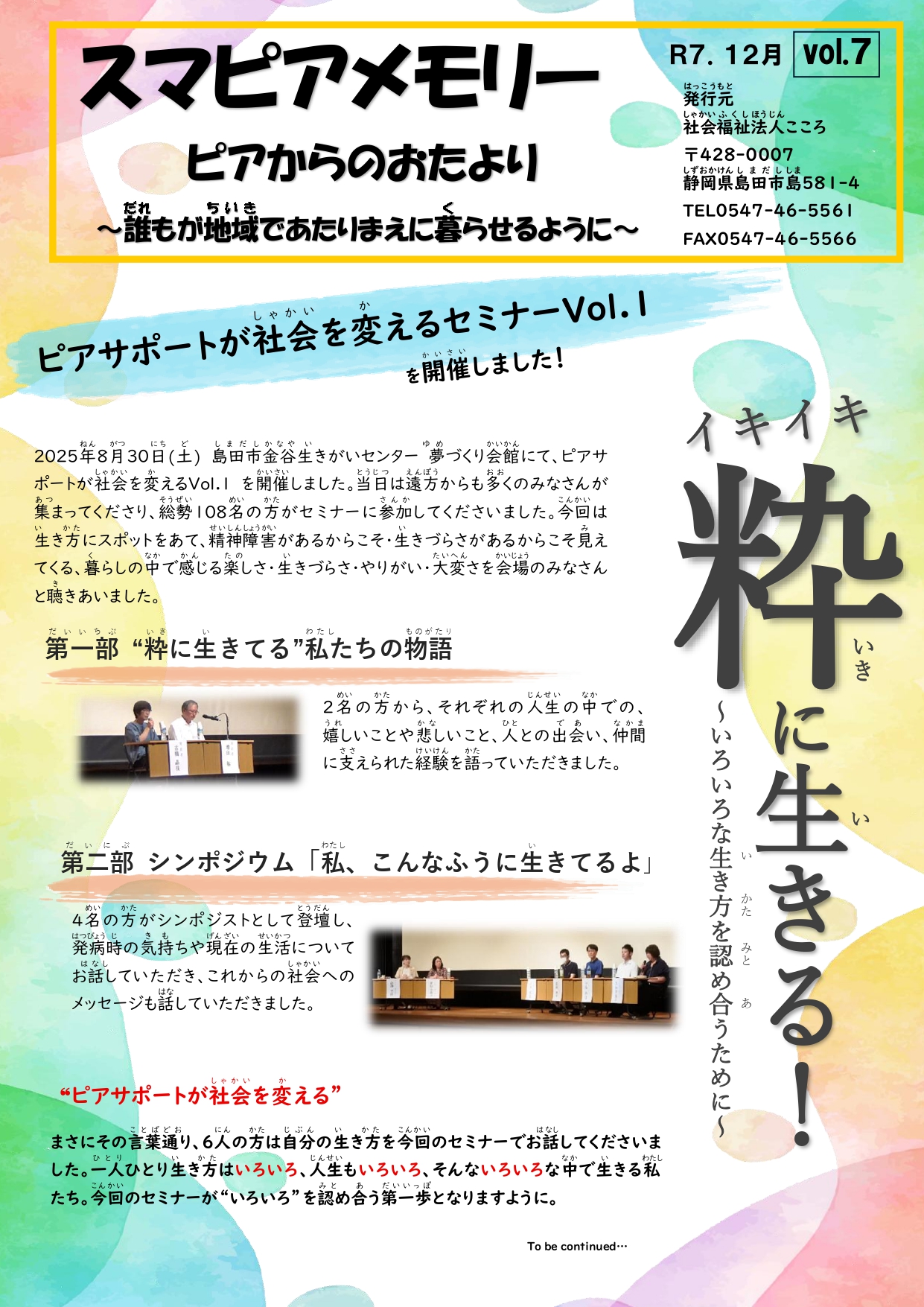 社会福祉法人化に併せてスマイル通信は「スマピアメモリー」として名称を新たにリスタートしました。