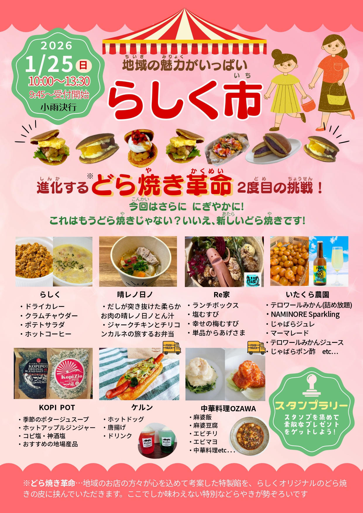 今回のらしく市も前回に引き続き、地域のお店の方々と一緒に開催します。